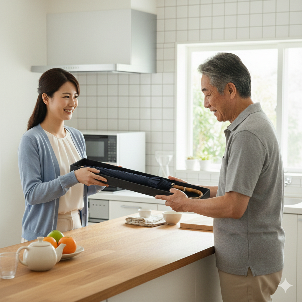 実用的で長く使えるものを贈りたい雨晴兼用でき・強い骨組みでく愛用できる
